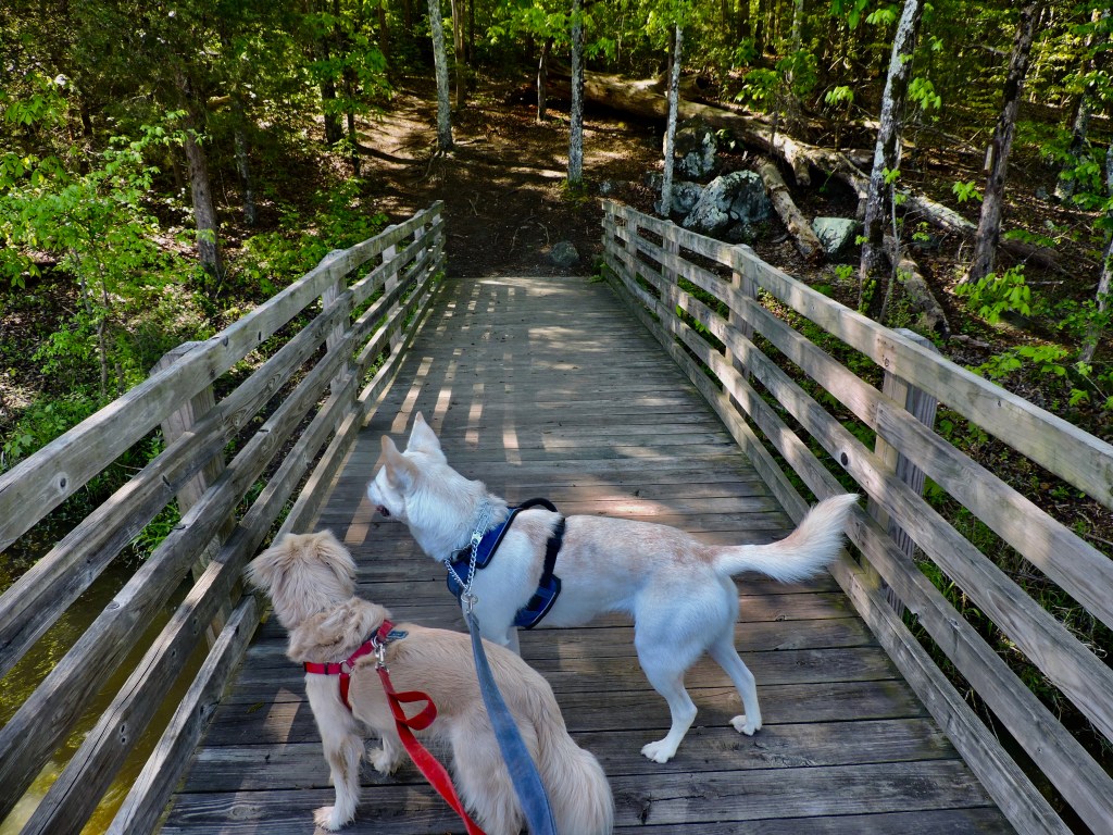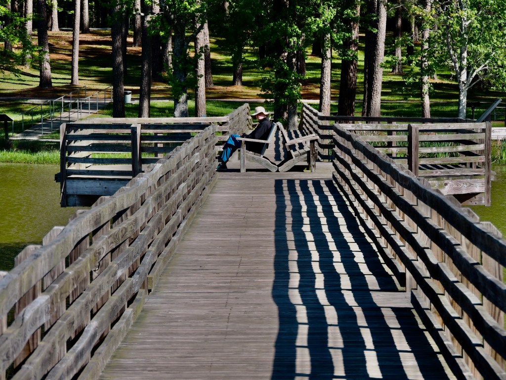 Rumor has it you can catch sunfish and bass, but I only saw folks gently kayaking while I was there. The hiking is lovely and not too strenuous if you stay on the trails. Much of the trail follows along the lake, and is quite lovely and easy to traverse. Looks like there’s an unofficial trail going around the lake that may have been a bit tougher, but we didn’t have time to finish it. Oh, and there’s a playground too and a lovely bridge and at least two fishing piers.